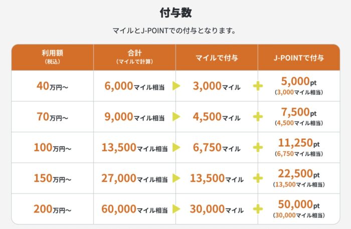 新規入会キャンペーンを活用して得られるマイル数は以下の通りです。