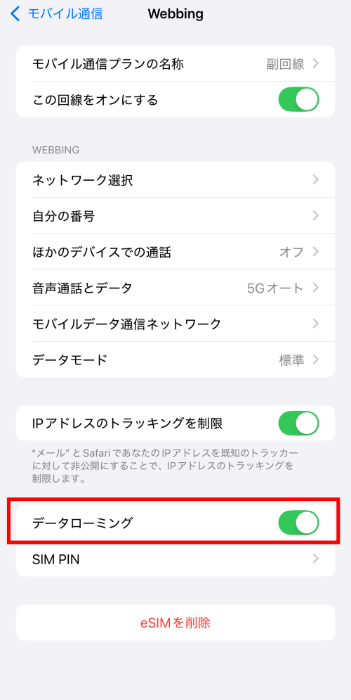 あとは、現地に着いたら日本で使っているSIMカードと、現地用のeSIMとの通信設定を変更するだけで海外でインターネットに接続できます。