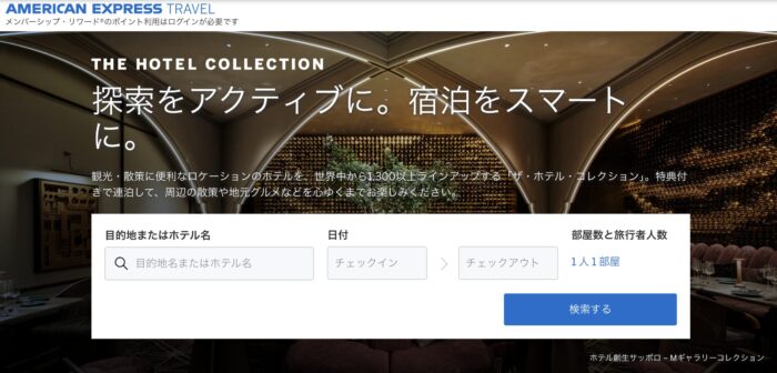 このトラベルクレジットは、アメリカン・エキスプレス・トラベル オンラインでのホテル予約に利用でき、対象の宿泊費に充当可能です。