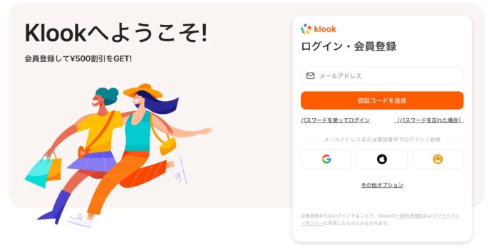 すでにKlookのアカウントを作成済み(新規登録ではない)
