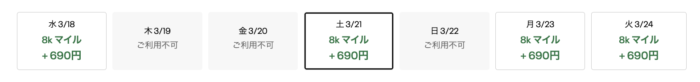 8,000マイルで上記の航空券を予約できた場合のマイルの価値は、1マイル当たり1.73円〜3.98円になります。