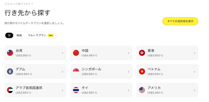 対応している国の一覧が出てきますので、渡航先の選択します。