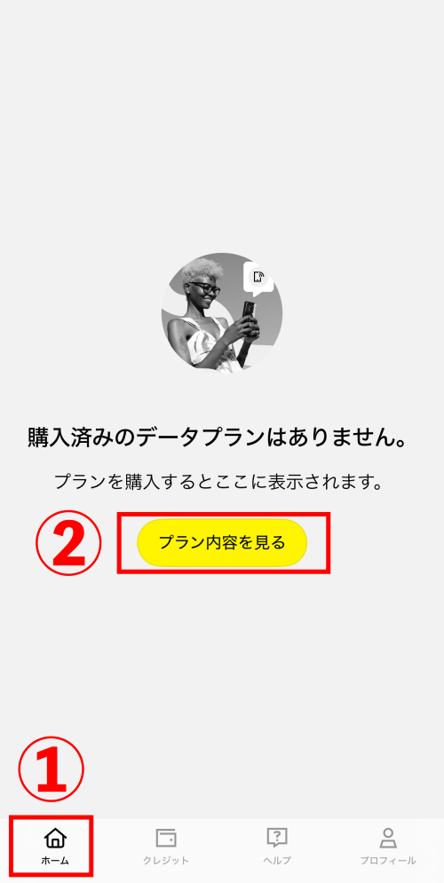 画面下部の「ホーム」をタップして、「プラン内容を見る」に進みます。
