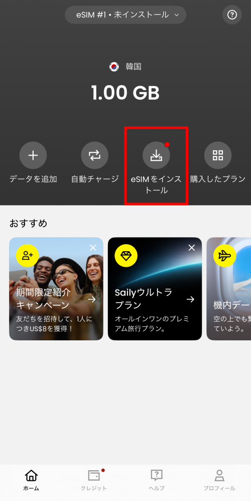 Sailyでは、アカウント登録からプラン購入、eSIMのインストールまで、すべての手続きがアプリ内で完結します。