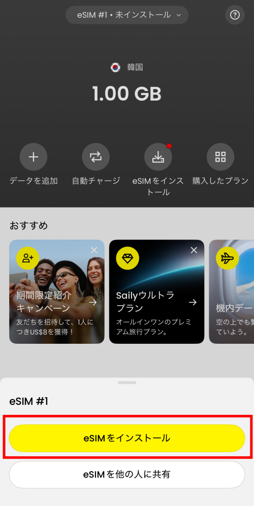 SailyのeSIMは、手続きがアプリ内ですべて完結する
