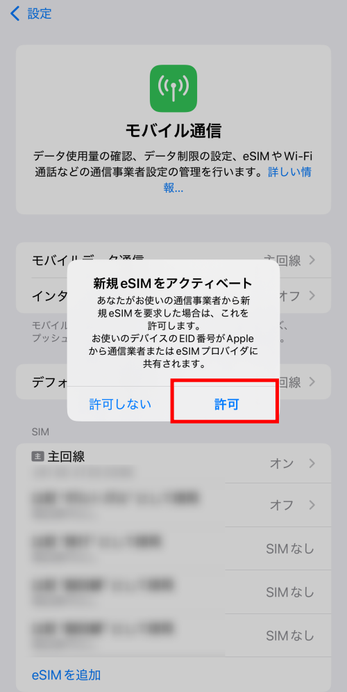 ※Wi-Fiに接続しているとeSIMに接続できないので注意!