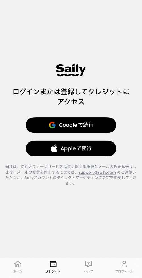 紹介コードはSailyアプリを開き「クレジット」をタップすると、を簡単に確認できます。
